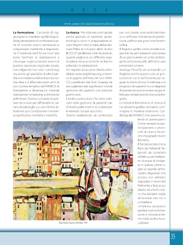stra Area si è affacciata pochi anni fa CO, coordinato dal Dott. Casazza, sta guire la storia clinica, l’incidenza e la