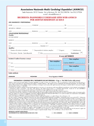 (www.anmco.it), in una parte del sito riservata ai soli soci e consultabile solo dopo registrazione tramite login e password.