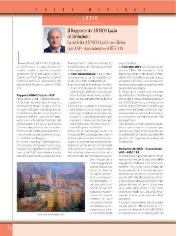 L’attività dell’ANMCO Lazio ne- Management in ambito cardiologico sua ricorrenza.