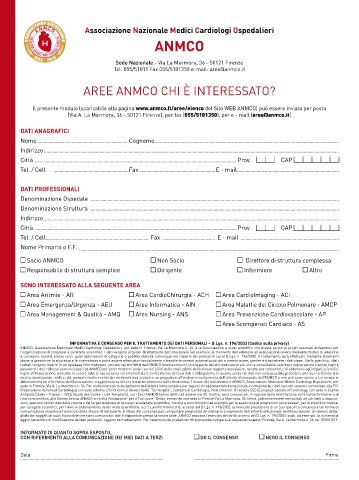 Il presente modulo (scaricabile alla pagina www.anmco.it/aree/elenco del Sito WEB ANMCO) può essere inviato per posta