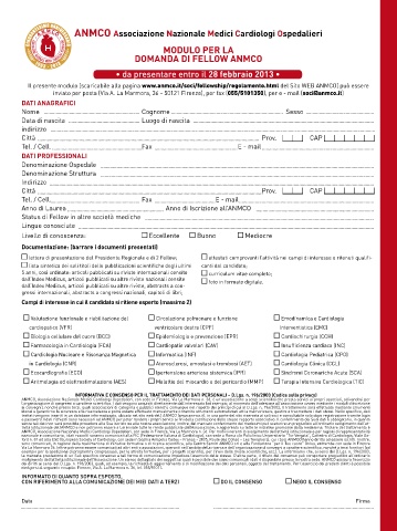 Il presente modulo (scaricabile alla pagina www.anmco.it/soci/fellowship/regolamento.html del Sito WEB ANMCO) può essere