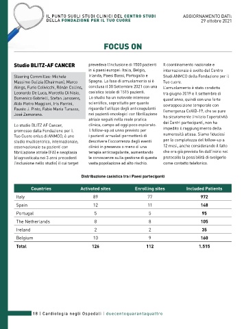 Lo studio bLITz AF Cancer, clinica, campo ad oggi poco esplorato. dei Centri partecipanti, non ha
