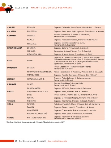 Tabella 1: Centri che hanno aderito alla Giornata Mondiale di prevenzione TEV