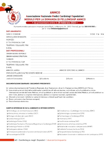 MODULO PER LA DOMANDA DI FELLOWSHIP ANMCO